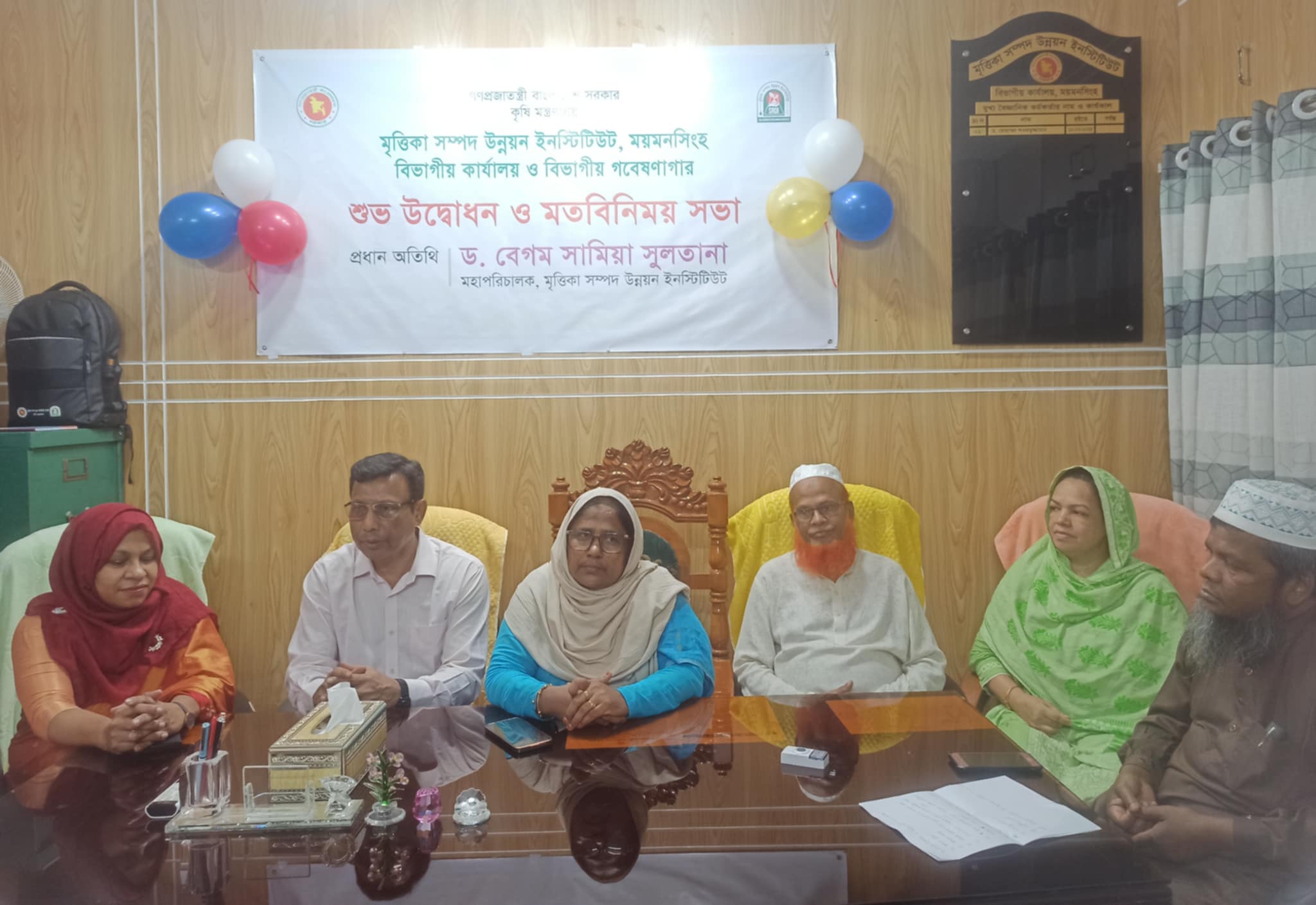 মৃত্তিকার সেবা আরও বেশি জোরদার ও মাটি পরীক্ষার কার্যক্রম সহজ করতে মৃত্তিকা সম্পদ উন্নয়ন ইনস্টিটিউট বিভাগীয় কার্যালয় ও বিভাগীয় গবেষণাগার, ময়মনসিংহ অফিসের শুভ উদ্বোধন ও মতবিনিময় সভা অনুষ্ঠিত হয়েছে। ময়মনসিংহ বিভাগের চারটি জেলা ময়মনসিংহ, শেরপুর, জামালপুর, নেত্রকোণা জেলা নিয়ে এই বিভাগীয় অফিস কার্যক্রম শুরু করেছে। ময়মনসিংহ বিভাগীয় গবেষণাগারের অধীনে ময়মনসিংহ গবেষণাগার ও জামালপুর গবেষণাগার এবং বিভাগীয় কার্যালয়ের অধীনে ময়মনসিংহ কার্যালয়, জামালপুর আঞ্চলিক কার্যালয় ও নেত্রকোণা আঞ্চলিক কার্যালয় তাদের কার্যক্রম সফলভাবে পরিচালনা করবে।
